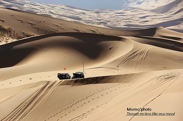 加木苏师傅带着我们在沙漠里尽情驰骋。看窗外茫茫沙海,没有固定的路线,没有尽头,你不知道下一秒面临怎样的刺激,不知道翻过某个沙丘将看见怎样的风景。