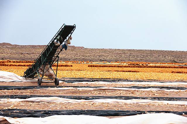 这个洋气的东西就是沙漠里面的抽水机,你得先倒进去一些水,然后一上一下的拉动手柄,水就会出来了。不怕你笑话,俺真没见过这玩意,觉得特别新鲜,好玩。为此,又被发财哥鄙视了,他眼睛瞪得跟二筒似的,用特别匪夷所思的语气追问我:“你没见过吗?你当真没见过,从来没见过吗??!”那感觉就像是地球人都晓得一样,好嘛,我来自火星,无语O__O"…