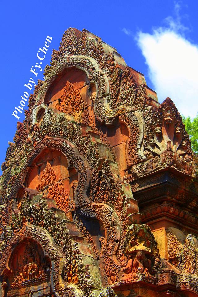崩密列的路途较远,建议各位游完女王宫去崩密列。个人认为,崩密列是柬埔寨之行最值得看的一处地方,虽然路途遥远,但是非常值得。各位可以到达入口处寻找戴有“Authority”标志的人当向导,费用为1美金。里面的路程非常复杂,需要当地导游才行。不过这些“向导”的英文不好,所以只能说非常基础的英文,稍微复杂一点他们就晕了。所以去之前大家就先做好功课,阅读以下比较好。当本人去到的时候就纯粹的体会崩密列的震撼。那种力量是不宜言表的。