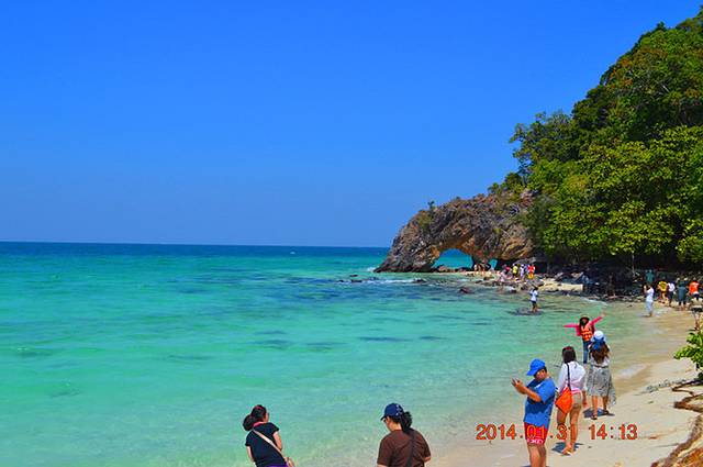 Pattaya Beach:位于岛的南部,是最热闹、酒店&餐厅最多的海滩;海滩呈月牙形,沙质是3个海滩里最白的也最细,和岛外主要的交通来往都在这个海滩。上岛时在这个海滩停靠;海边的船最多;