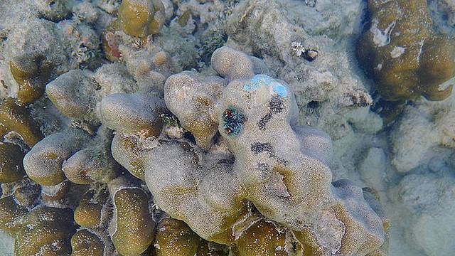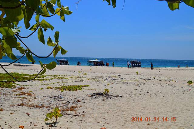 第一次从船潜下去感觉比较新鲜,我们下水的地方水深大概10米这样。不过穿着救生衣,也没感觉害怕,可是没用过脚蹼,我还是穿潜水袜下去。这个岛鱼一般,珊瑚也不是非常多。能见度因为是有船多来往的关系,不那么好。可是由于海浪的关系,就算不划水,波浪会把你推离船越来越远,我感觉有些吃力,就努力游回了船上。结果等我们大家都上船的时候,兔兔李老师已经离船好远好远了。然后我们让他们不动,开船过去接他们。嗯,有船就有这点好处,游不会来的时候,可以等船过来。等大家上了船,我们又向第二岛出发。