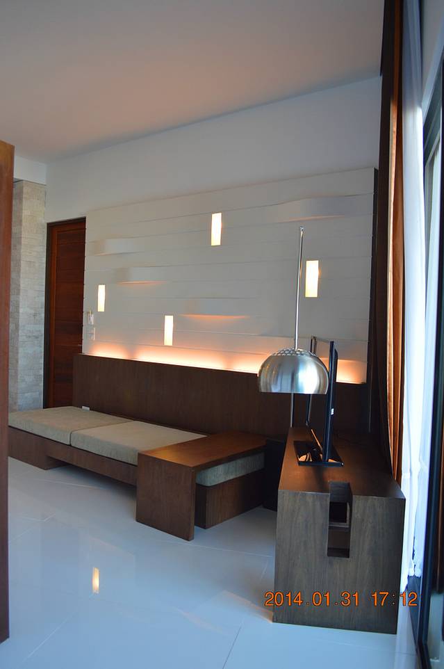 吃完早餐,就到前台去问问什么时候能换房,接下来的四天要搬到豪华池景房,我们和兔兔都是一样的房型。前台说兔兔他们的房间准备好了,我们的还没有打扫好,让我们先把行李搬到兔兔她们房间,因为我们的房间在他们的隔壁。于是我们就回房间收拾行李啦,这么好的房间,我们也是只睡了一觉就离开了……新房间比想象大好多~!田园的房间设施还是不错的,三星的电视机,大金的中央空调。衣柜的门双向打开的,从房间或者卫生间都能打开了。里面还有供免费使用草编包,装浴巾什么的去沙滩游泳太方便了。