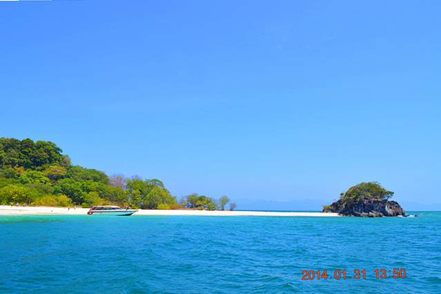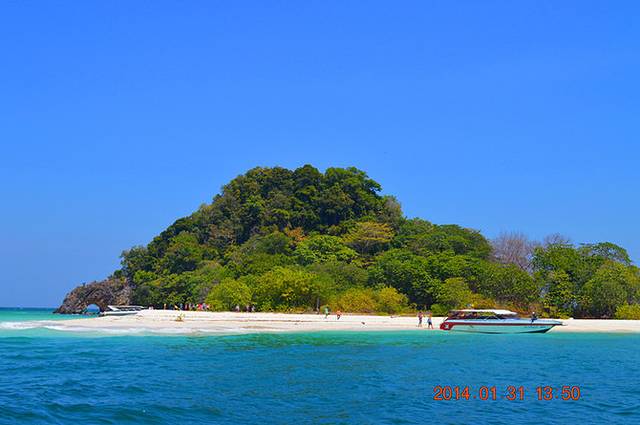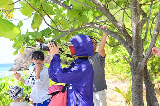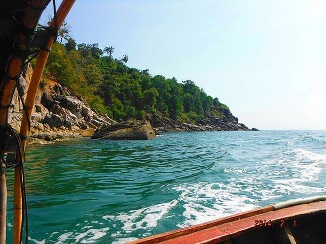 就在这时,大家以为又要开始跳岛游的时候,船的动力停~!!止~!!了~!!Orz~!!!!!船没了动力,就只能随波浪晃~!!!啊~!!!晃~!!!MD,难受死了~!!!!立刻感觉到胃不舒服~!!!然后船老大说4个马达中的一个不能工作了~!!!!然后船继续晃~!!!!啊~!!!!晃~!!!!!!!!!然后船老大企图修船,船上一小半人顶不住了……开始吐了·!!!!!大家纷纷拿出塑料袋呕啊呕……~!没有休息好的小C,也开始了。我还在努力忍住……船老大试了大概十多分钟还是不行,就用3个发动机开到了这个岛的岸边,然后,示意我们下船~!!大家茫然的下船,发现这里没有手机信号,而且当时就我们一艘船……Orz这是要演《lost》还是要演《荒岛求生》???当时是中午1点多,又热又晒,我们又饿又渴又想吐或者已经吐了……真悲惨~!不过,踏上土地想吐的感觉立马消失。无奈只好找了片树荫开始拍照~!但是这个岛确实是美~!