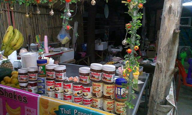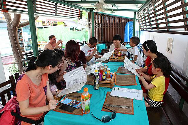 今天是呆在lipe的最后一天了,所以我和小C决定睡到自然醒,不去吃早餐了~!!!10点多我们起床,吃了泡面和酸奶。冬阴功泡面真美味挖·!!!!!!然后中午大家到步行街吃午饭,中午步行街开的餐馆比较少,随便选了一家。我吃炒面,上面写的glass noodle,其实就是我们的陈村粉~!!!