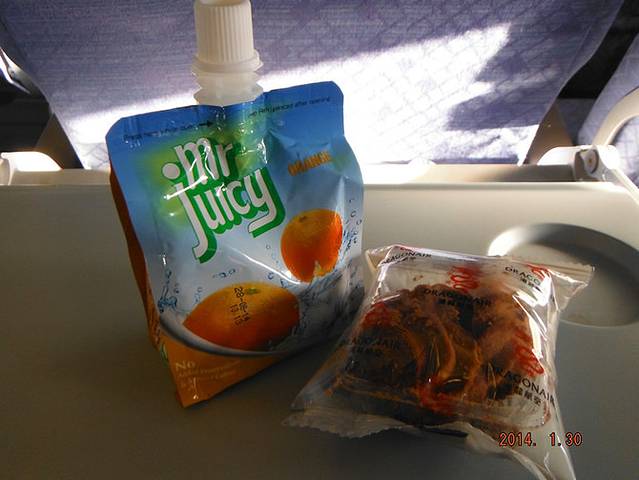 虽然飞机餐只有饼干和饮料,可是人少,饮料任喝。那个番茄酱大叔和我同一班飞机,他又在喝啤酒了。