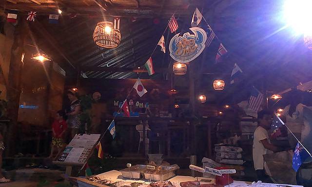 唉,其实上,lipe水的能见度和物种种类来说还是比浪中岛差了点的。没东西看,我们就到门口的泳池游了会儿。然后回去洗洗,准备到芭提雅海滩吃晚饭。来到芭提雅海滩tiger海鲜店,已经坐满了,但是店家又在最外面拼了张大桌子给我们10个人,坐好开始点菜。