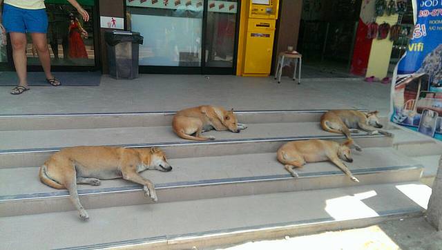 吃完冰淇淋,我们就去7-11采购。门口的很可爱躺着4只田园犬~!好可爱~!
