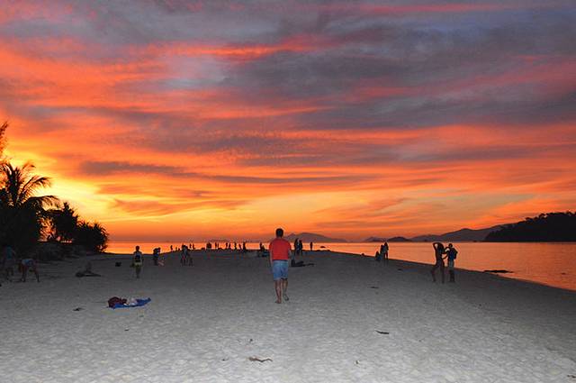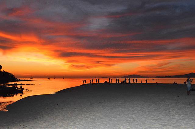 Sunset Beach:日落海滩,这个海滩长度比较小,沙滩宽度也较小,岸上很多礁石。酒店不多,海边的船最少,比较私密。