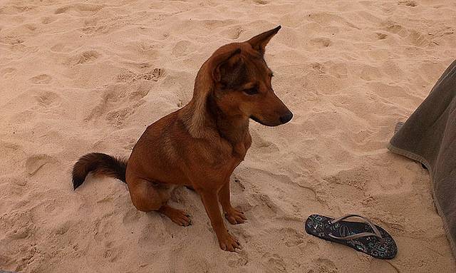 沙滩上还有无数的狗狗在睡觉,你碰到 它,它看你一眼,又继续睡……