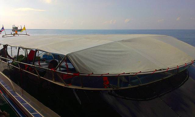 正当我们在树下煎熬的时候,工作人员招呼我们上船了~!哦也~!!船修好了。不用演荒岛求生了~!!船开了,由于又累又饿和之前的晃荡,感觉胃还是很不舒服,只能拼命忍耐~!唉,出门前我还查了晕船的英文怎么说,结果,自己竟然遇上了~!又煎熬了40多分钟以后,终于来到了离芭提雅海滩不远的海上平台~!