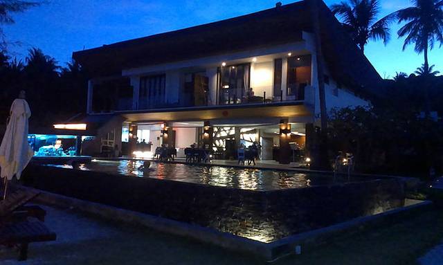 终于爬到lipe了,可是上天还要给我们最后一个考验。我们和船老大说我们要到日出海滩,可是他说那边开始退潮了,只能到芭提雅海滩~!Orz,我们一群人茫然的下了船~!走到阴的地方,罘罟打了电话给田园。田园说马上派人来接~!那个时候,大家都是筋疲力尽了~!不过不一会,田园的人就来了·!!!!坐上皮卡车,来到了田园酒店~!实在太太太太不容易了·!!!!!我们拿出订单和护照check in,前台工作人员给我们安排房间,然后我们坐在大堂的沙发休息,喝着welcome drink-一杯紫色的饮料,味道像果汁和姜的混合物,又累又渴,一饮而尽啊~!从大堂望出,好美~!!