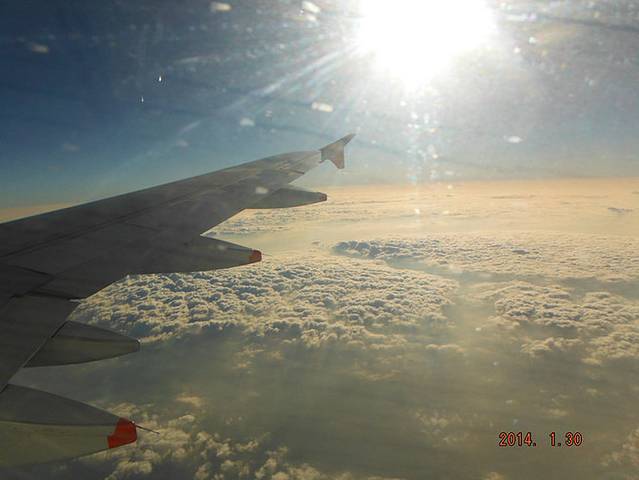 结果过了10分钟,就广播说可以登机了,虚惊一场~!就在我登机的时候,小C还没有得起飞!不好的感觉又立马涌现出来。除夕的飞机好空旷,大概只坐了三分之一的位置,后面的空位置随便坐。起飞了,天气好好,好多云~!