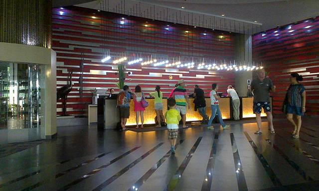 交护照入境卡,拍照,很快就办了。在等行李的地方打了电话给小C,关机,嗯,她一定在飞了。取好行李到了外面紫色的柜员机取钱,算了一下,汇率是5.39,很不错嘛~!!!!然后我们5个人拖着行李,来到一楼出租车口打车,5人一辆7坐的大车800B到阿玛瑞酒店,司机师傅抄了小路,40分钟就到了~!!!来到阿玛瑞check in,由于是除夕夜,阿玛瑞的服务生穿的红色的唐装,很有过年的感觉。办理速度很快,额外交了1000B的押金,前台工作人员会用很标准的讲出押金的中文,要填写的表格也有中文样板在旁边,好贴心。