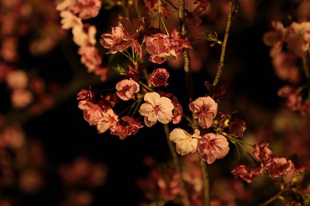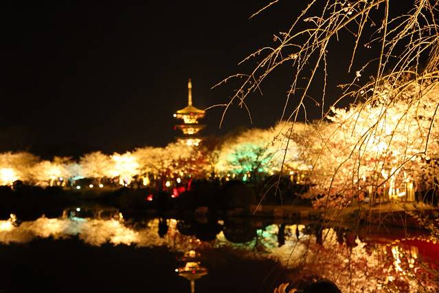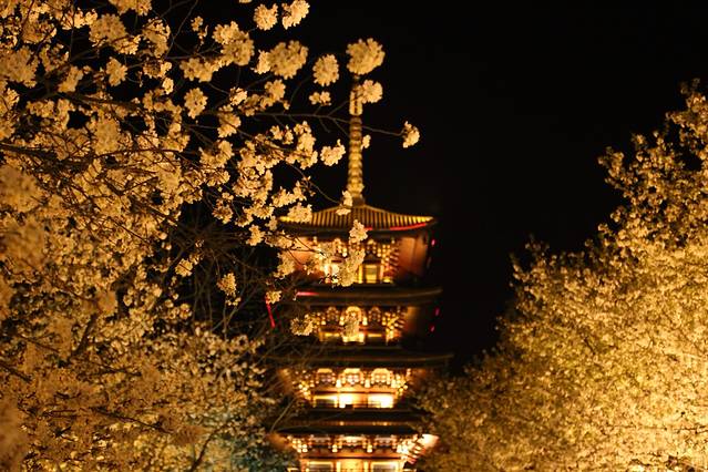 特意选了一个傍晚去。5点多的样子,既能看见白日的樱园,也能看见晚上的樱园。白天的甚是漂亮惊艳,晚上的也好看的叫人惊叹。