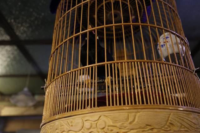 这只八哥是真的会说话,你好什么的,还会那种很魔性的笑。