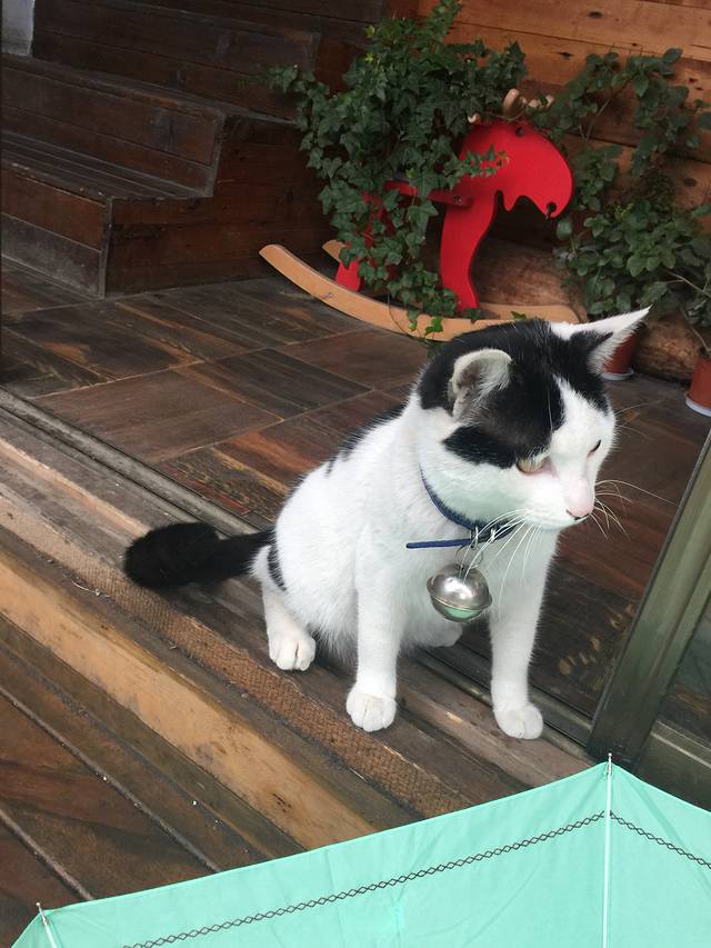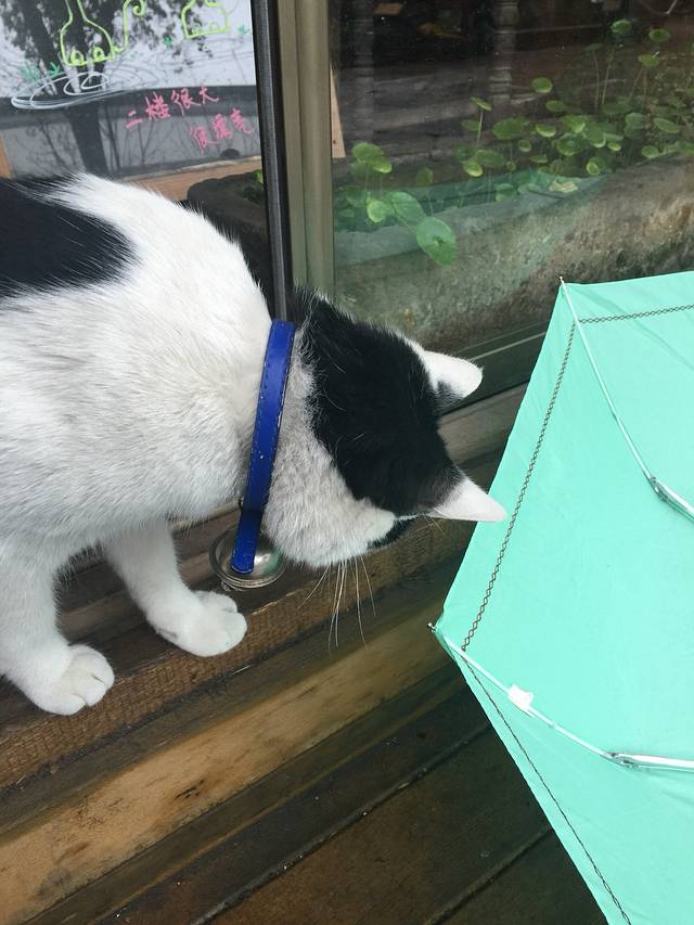 路遇啊咪'我一喊它就过来了'在玩我的伞