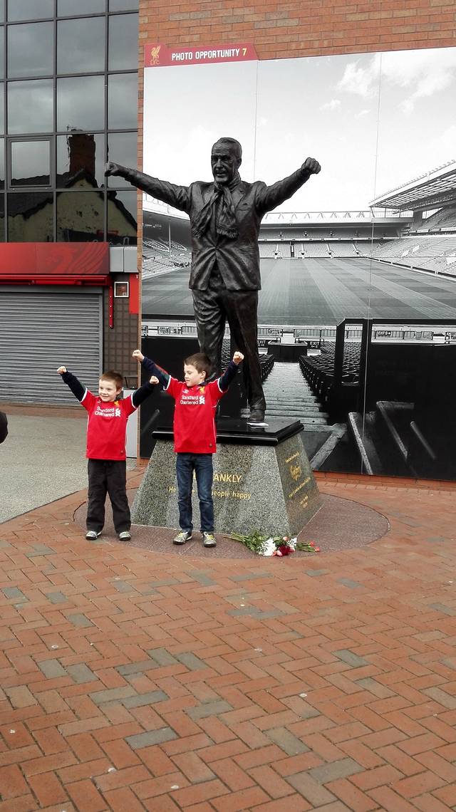 从hotel离开我们去便利店买了点吃的,然后直奔安菲尔德球场。由于是比赛日,几乎一整车都是红军球迷,球场周围也被球迷围了个水泄不通。虽然这个梦想怀揣了很久很久,但到达球场时我却很平静,仿佛自己已经来过很多次一样。走到这里的过程是艰辛的,但由于总是满怀信心,所以进入球场触碰梦想也来得颇为自然。朝圣甚至由此更像是回家~