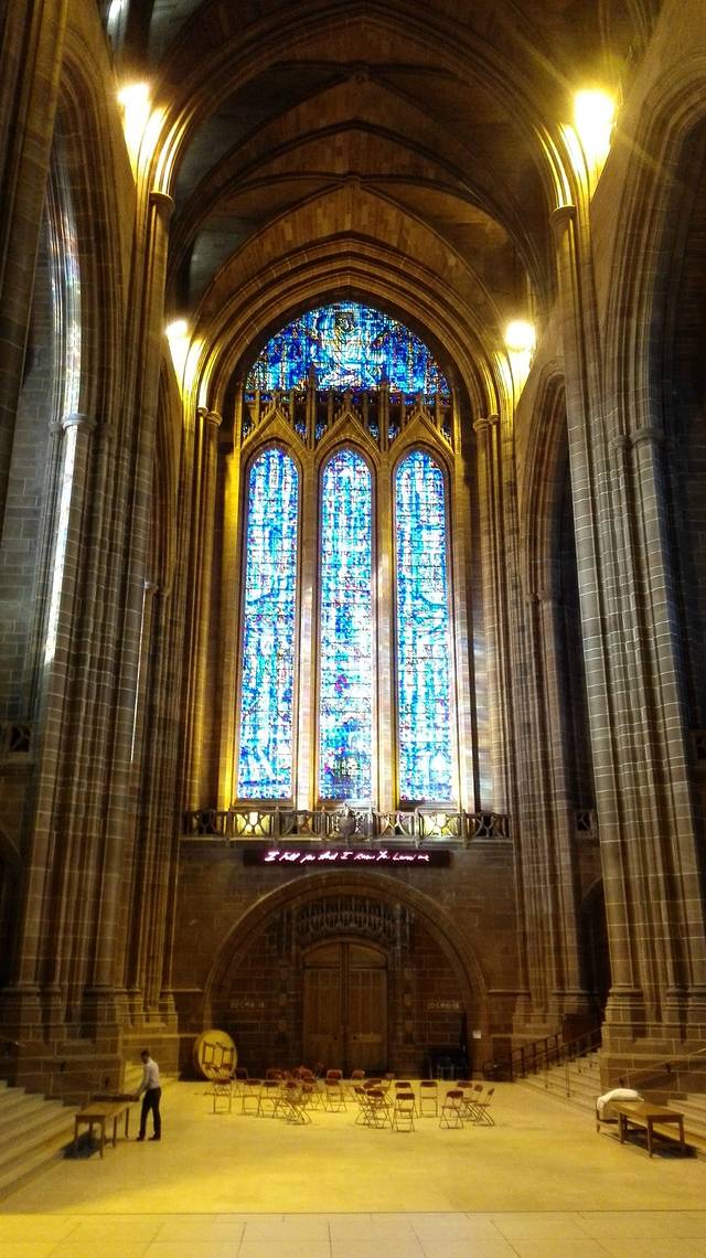 我们接着公交回市中心,参观了Liverpool Gallery和Cathedral,两处均不收费。教堂虽然不大,但依旧很有震撼性,哥特式的建筑高耸入云,满眼的花窗玻璃,人瞬间宁静下来,精力也得以恢复。