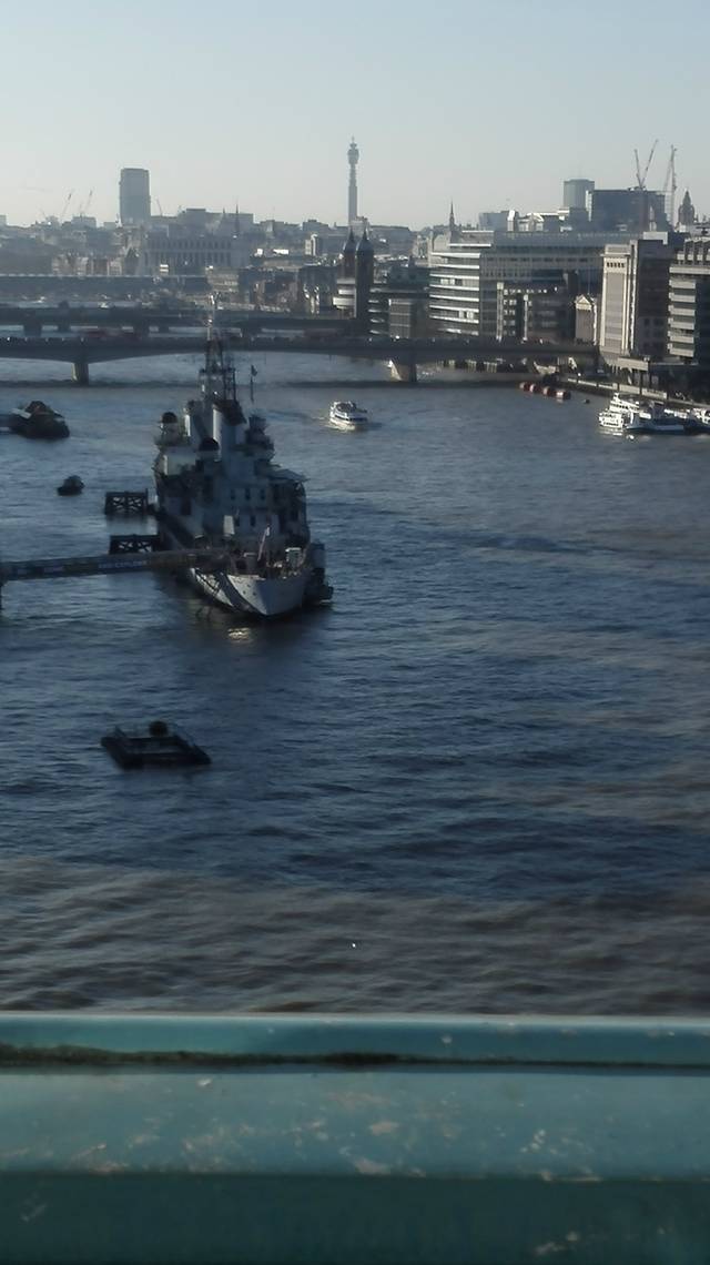 我们乘上东行的地铁,在伦敦塔附近下车。接下来的景点就是著名的塔桥。它建于维多利亚女王执政时期,有上下两层,下层的路面可以升起供船只经过。我们的游览则位于上层,观景的特色除了河边景色外还有脚下的透明玻璃,这样宛若走在半空,看脚下车来车往、河水翻腾。在塔桥使用London Pass可以不用排队,所以参观非常顺畅。
