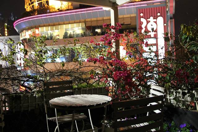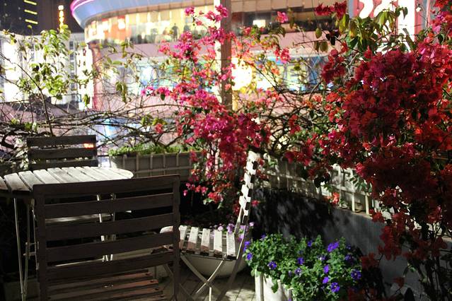 在楼顶的咖啡厅外的小花园,还有一条楼下往上走,楼上是一个小花园。