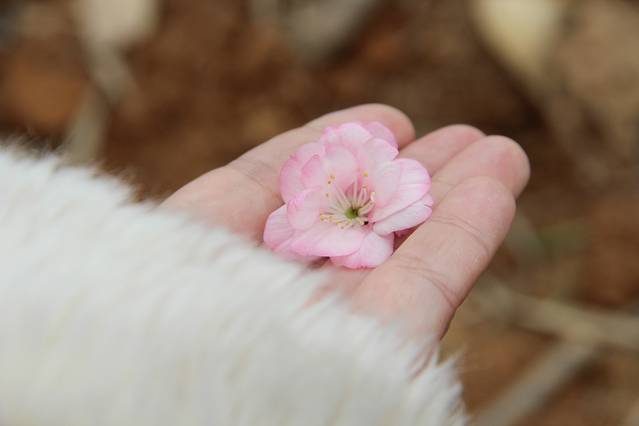 轻轻打开手,接了一朵被风吹下来的,有点小浪漫。