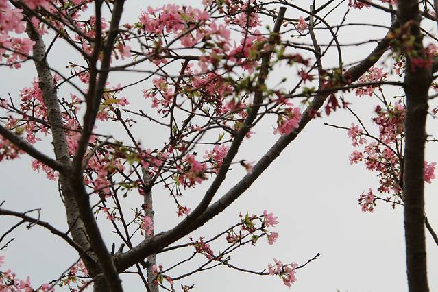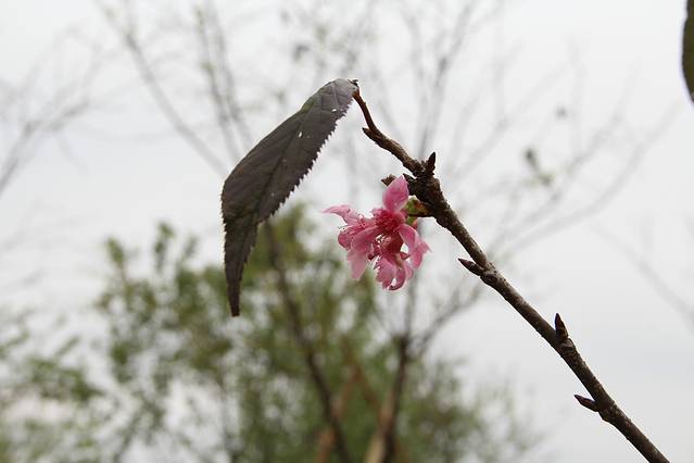 在山脚的樱花还正在盛开。