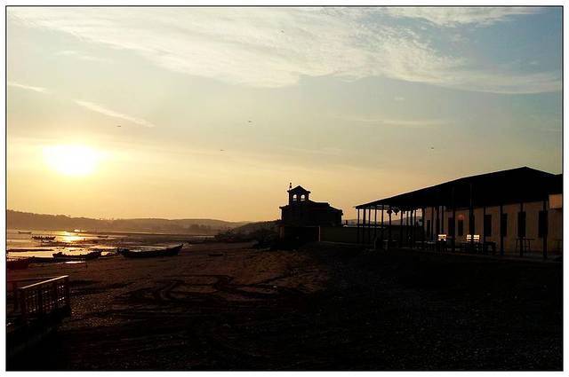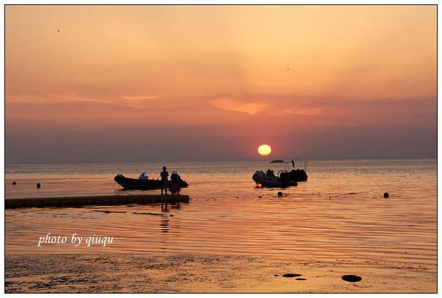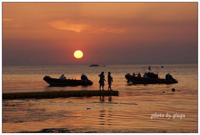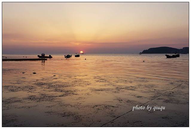 大家拿了相机,走下海堤,等待拍摄绚丽的落日。