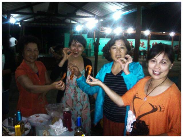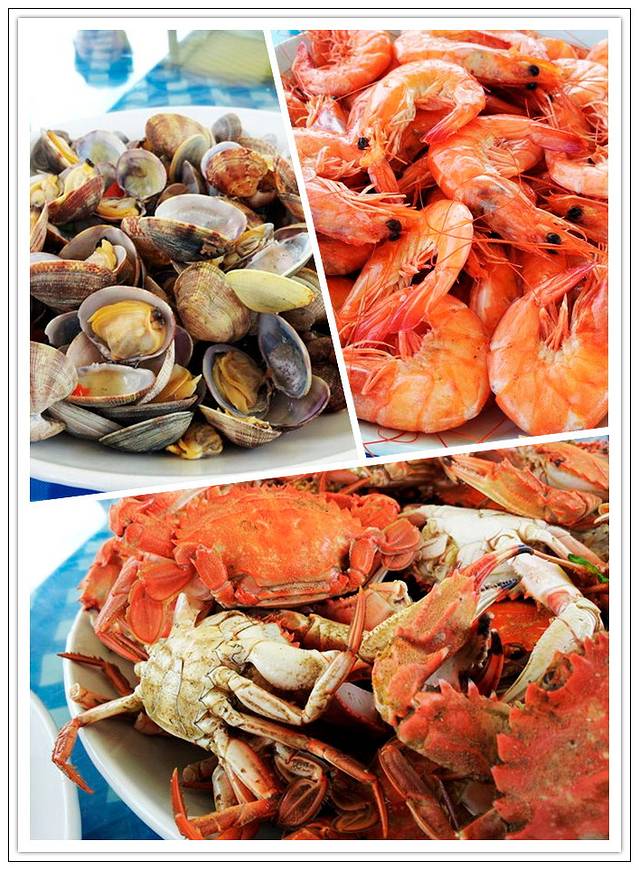 刚坐下,哇,诱人的海鲜就上来啦。太棒了,大家禁不住又放开大吃。