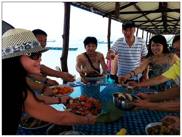 结束游览,回到渔村,依旧在海边用午餐,依旧是诱人的海鲜。但是,大家明显对海鲜的狂热劲减弱了,却对蔬有了极大兴趣,土豆丝、炖豆角、炒南瓜成为了大家欢迎的食物。