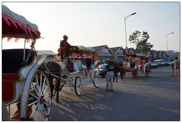 用完早餐,租了两辆车,每人20元,去游览岛上的老铁山风景区。