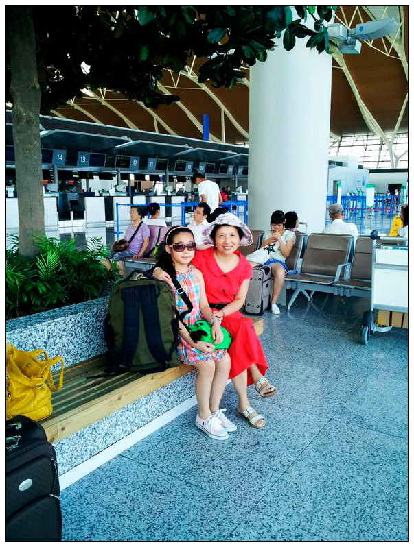在候机楼和已经到达的威廉、查理相会后,办理了登机牌,等待窝窝到来。没想到,窝窝乘坐的地铁出了点故障,直到我们登机了,她还没到达,真正是让人着急啊,一边不停地和她手机联系,一边用微信向大连方汇报。