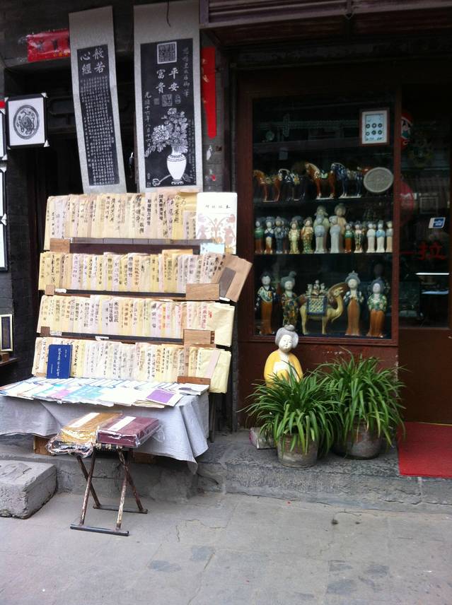 买土特产,干果什么的,去回民街就好了!都老字号味道正宗,我买到了地道的桂花蜜,玫瑰蜜,杏脯,咋能好吃成这样!!!好象买魏家凉粉带回去,可惜飞机不让带唉!去书院门买的皮影,要比回民街便宜很多的哦!如果喜欢书画什么的,一定要去书院门哦!我买了2副陕北剪纸,还有一位老人一家画的工笔花3副!抄写心经的黄宣纸!去了那个西行记卡片店,在回民街的,买了一对唐明皇和胖贵妃的风铃,很萌,后悔没有买兵马俑的风铃,不过他们家在淘宝有店的,打算回头看下!我这样要特别说的一个地方,是我2014年一年去过的最好的店,也是整个旅行下来我最喜欢的店,在世纪金花广场,鼓楼店那样。叫:阿弥的长安!!真想把它搬回家哦!跟老板聊的也很有缘,同时我正在想的,恰好他还给了我一份解答,很奇怪的说!他家的明信片才真正的修为有内涵的,总之,还是看照片吧!