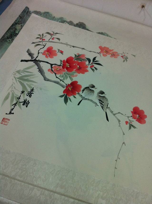 西安真是一个文化的城,水墨画到处都是,笔锋大气,色艳!