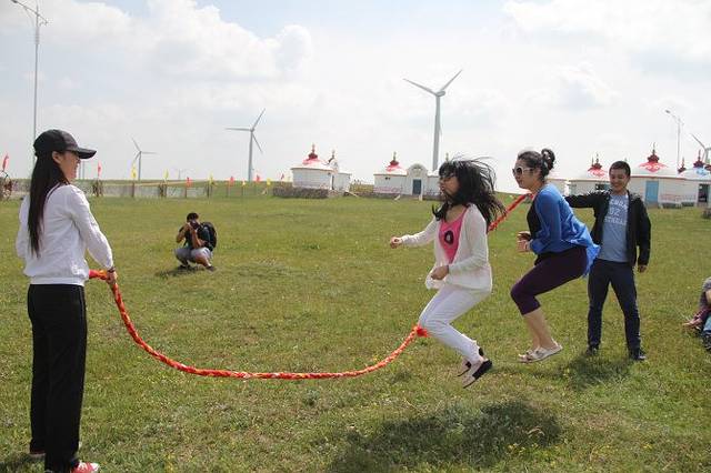 吃完早饭后大家在草地上玩着游戏,骑骑马,欢乐ING!