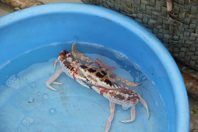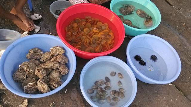 赶海遇到渔民刚出海打捞回来的新鲜海鲜,感觉看着还新鲜,果断买下!在结束旅行之前给自己吃顿好的!