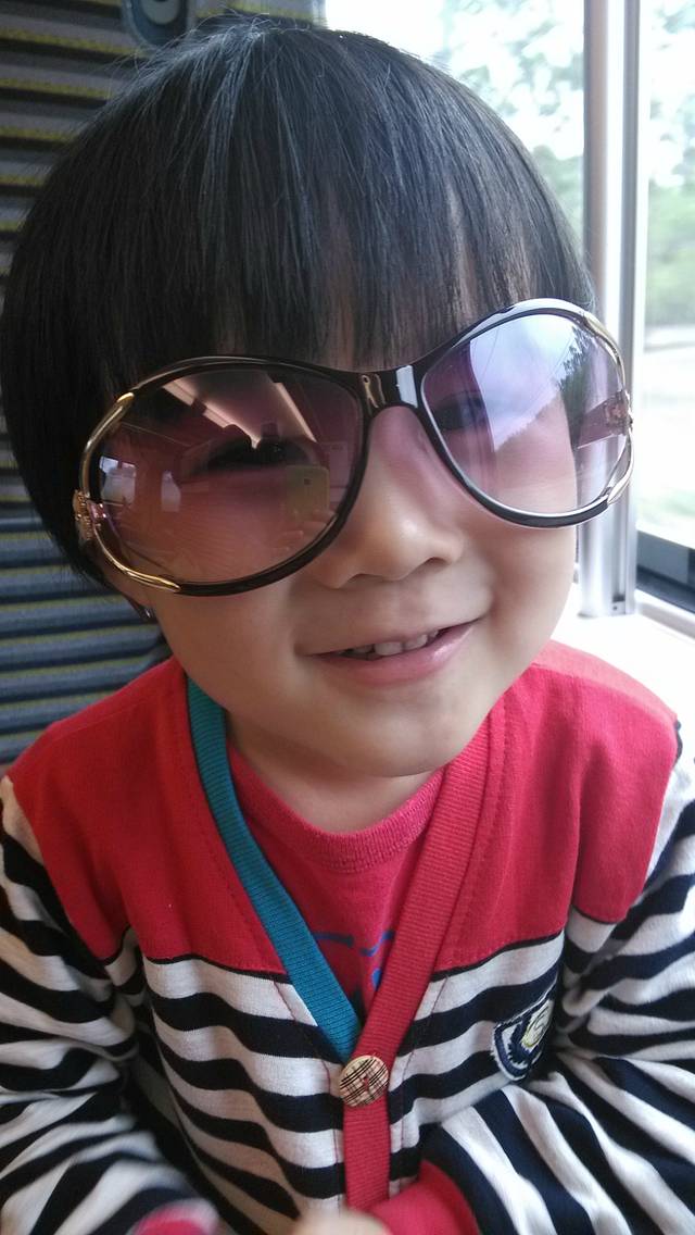 臭美停不下来,坐詹姆士坐的有点无聊了~超萌地抢着要带我的墨镜照相~