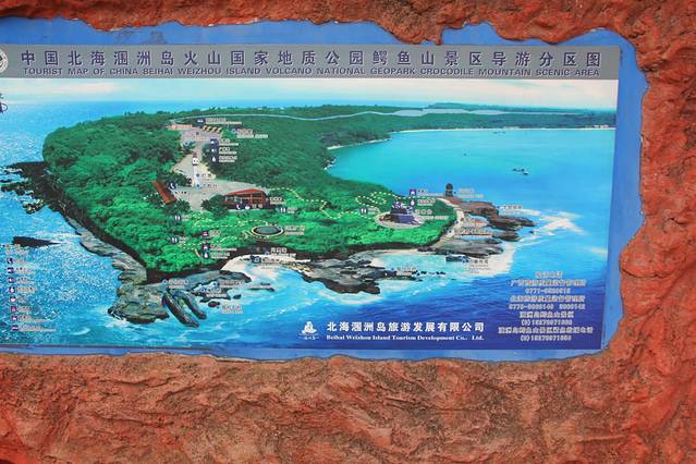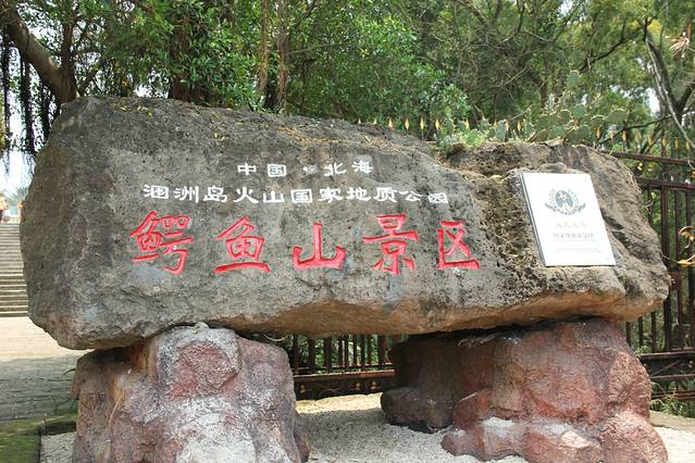 岛上还有一个必游景点—鳄鱼山景区,这个景区是岛上唯一要查上岛票的地方。小电驴是不能直接骑到景区门口的,可以骑行一半的路程,保管好车在继续徒步十几分钟就到景区了(岛上各景区都有保管电驴的地方,一般收费3元)。也可以在博物馆直接买游览观光车票,往返是20元每人,这个票还是建议大家购买,鳄鱼山景区比较大,整个景区下山下海上山的也要几个小时,游览完了或许你也觉得身体乏了,如果在夏天出行,建议一定要早点出门,高温天气太热了。这个景区还是比较好玩的,有丰富的火山景观,还有千奇百怪的火山熔岩地貌,值得慢慢去欣赏,待到下海再上山的时候,涠洲岛的整个海景尽览无余,赞!
