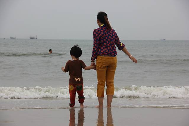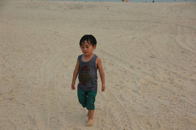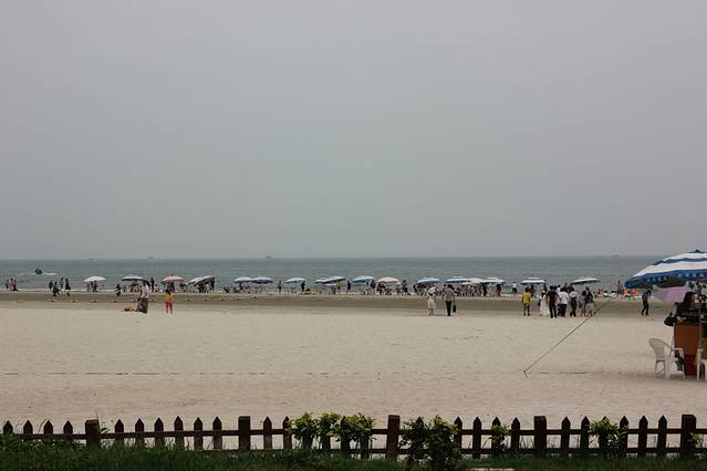 走完海洋之窗至多也是一个多小时,4点钟不到,于是我们决定去银滩逛逛。说到这实在按捺不住要说下北海的交通,这是一个让我不得不叹服这个海滨旅游城市的原因之一。看了一些攻略,基本上都是自驾游或者到当地包车周边游的多,现在想想这些旅游者们是很明智的!来之前也查询了本地的公交路线,但是到之后才发现作为游客还携带一小屁孩,你想全程旅游靠公交太不靠谱了!北海的大街小巷、车站港口、酒店景区到处都是拉客的三轮车和出租车。我一向对于这种拉客的行为比较敏感,无非都是宰客或者拉客赚回扣的。所以出行简单说就坚定两个基本原则,第一提前了解当地情况做好计划,第二遇见拉客的人一定要坚定意志,宁死不屈,只管摇头说NO!之所以说在北海旅游坐公交不现实,是因为公交线路太少,而且公交车也少。(私家车倒是挺多的!)我们住的地儿到银滩基本上就是从北海的最北部到最南部了,有一个三路正好往返两地,3路也基本穿越了整个主干道路,但是乘坐的人太多,在非起终点站要挤上车很有困难。在海洋之窗游览完去银滩,我们就打算坐3路去,但是等了足足半个小时,过了5趟3路车,但是前后门都挤不上去,因为带着小孩伤不起啊,我们最后还是无奈选择打车。之后从银滩回市区,公交车终点前的一站,但是连续四辆公交车开到银滩站司机都摆手示意满客不停车了!悲催吧,这样我们又无奈选择打车了!要是你有足够的时间愿意折腾还是能省不少交通费的!这就是北海的交通,所以满街跑的不是出租车就是拉客的三轮车!说到这不得不说北海出租车的一大特点:基本上都不带打表器!你得直接和司机问价砍价!还有一特色,就是无论出租车还是三轮车的司机,从你上车都会例行问你一套台词:住的地方找了没?吃了饭没?可以直接带你去xx地吃啊!准备去哪里玩啊?去xx地我可以帮你拿低价票啊!等等诸如这样的问题!你就只管敷衍下就行,不要点头答应就好!