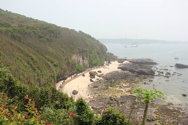 鳄鱼山基本上半天就能走完,回客栈小睡一下,下午我们就去滴水丹屏看日落了~石螺口至滴水丹屏的海滩是在一条线上相通的,海岸线比较长,徒步或者骑电驴都可以,这里有阳光、沙滩、潜水、海滨浴场、海上飞艇、观光船等等,早上可以起早在石螺口这一带捡拾海螺,中午可以租个沙滩椅好好享受下阳光海浪,晚上静静地观赏海上日落。