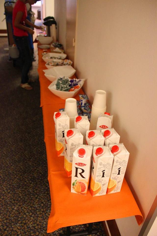 莫斯科和北京的时差是4小时,北京时间早上7点钟(莫斯科才凌晨3点TAT)之后,我就很难再睡着了。一直等到了莫斯科时间7点多才起床。早餐都安排在走廊里,除了面包黄油就是橙汁咖啡,自行取回房间用。