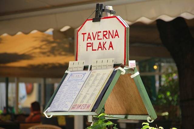 逛到普拉卡,找到之前游友推荐的一家餐厅“taverna”,后来才知道这个单词的意思就是希腊的酒馆/餐馆。