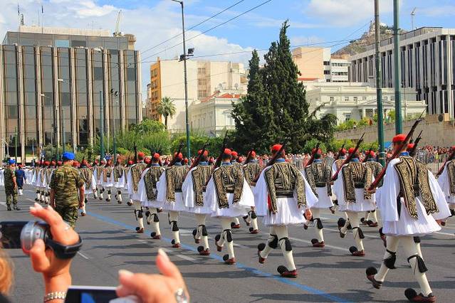 宪法广场,每一个小时就有一场宪兵换岗仪式,每周日的11点,会有一场大规模的宪兵换岗。
