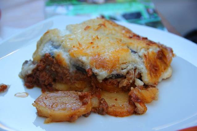 穆莎卡 Moussaka,最广为人知的羊肉料理首推—羊肉派(Moussaka),烹调时将碎羊肉、茄子及蕃茄层层迭上,加上派皮与Feta奶酪烘烤而成,是一道令人垂涎的主菜。希腊的生活绝对少不了奶酪,超市或传统市场的奶酪种类多得让人目不暇给。其中,世界知名的Feta奶酪,可说已成为羊奶奶酪的代名词,而希腊人平日的餐食,从开胃菜、主菜到点心,几乎皆可见Feta奶酪的踪影。