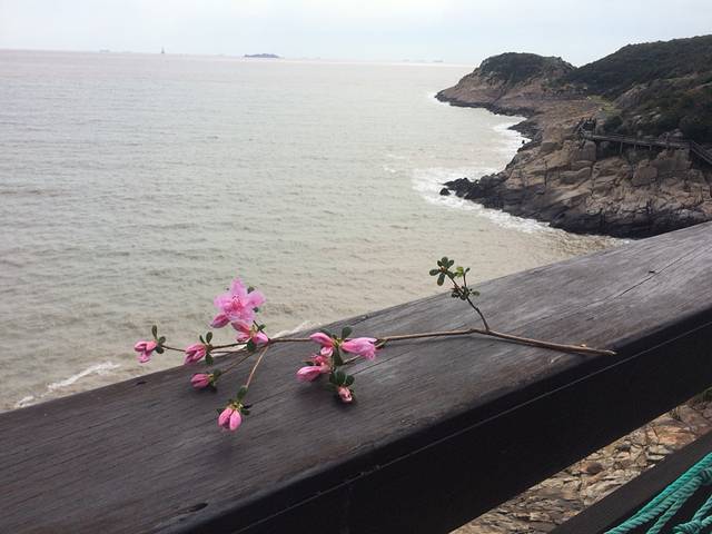 去舟山是一次说走就走的旅行,在桃花盛开的季节来到这里。走的急了,没有买到最佳时间的车票,其实可以买夜里到宁波的车票,第二天早上到。我们是合肥南站始发第一班动车,将近4个小时到达宁波。在火车站里面就有卖大巴车票的,到沈家门的车票是59元,会给一张纸条,写着如何去汽车站坐大巴,很方便,售票窗口前面有一电梯,上去右转就看到公交车站,坐988—1直接到车站,等大巴,大巴从舟山跨海大桥走,两个多小时才能到沈家门车站,出了沈家门车站可以选择打车还是坐公交去酒店。然后基本上下午两三点了,去酒店歇歇,晚上去海鲜大排档吃晚饭,在沿着海港边逛一逛。