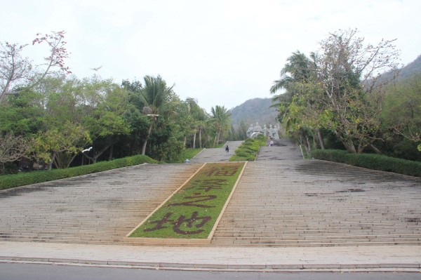 天涯海角风景区包括大门内分居两侧的天涯购物寨、民族风情园以及历史名人雕塑园,这三个地方可以不用耗费时间,进门往前直走到八角广场(位于海边,这里的海景很不错)。
