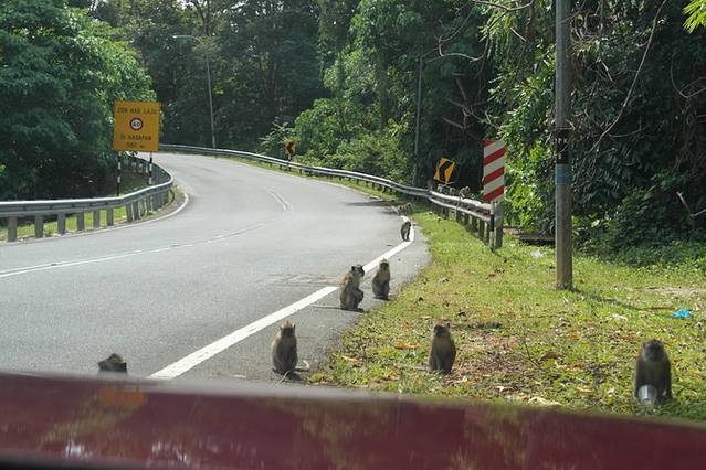 在去往东方村的路上偶遇了野猴,停下车拿着饼干去了,结果被围了,扔了所有饼干赶紧跑回车里,千万别随便亲近这些野猴,因为有可能一瞬间就几十只出现了。