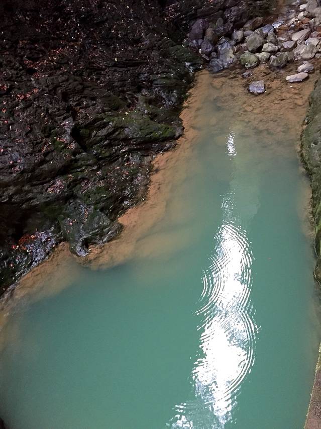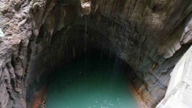 地缝,我认为与天坑应是一系列的。天坑的水流入地缝,在地缝得以展示,独特的喀斯特地貌,使得地缝的水透绿透绿的,另外这水里面鱼类也是不可能生存的。地缝跟天坑的伟岸不同,她是含蓄、内秀的。