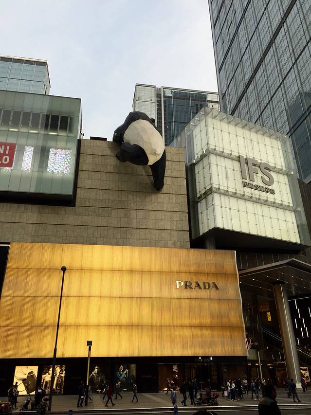 步行经过春熙路 熊猫往上爬的设计很可爱