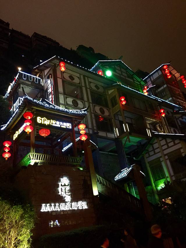 夜晚的洪崖洞,别有一番风情。错落有致的酒吧、惬意的外国人,江边的微风,都为眼前的景象增添了动人的意境。这大概就是山城重庆得天独厚的风景了。