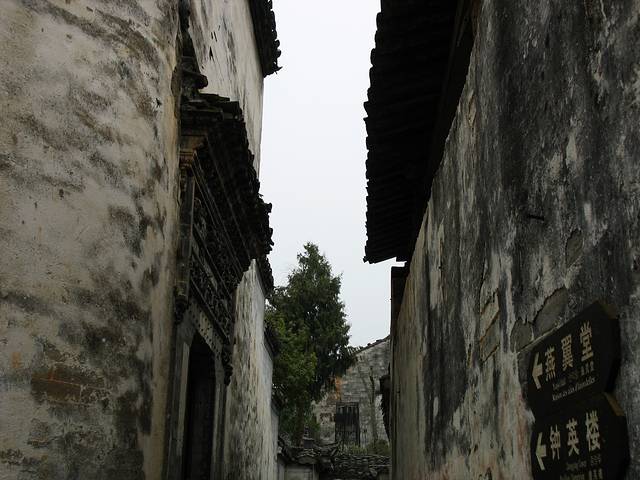 马头墙、发黑的墙壁、悠深的小巷,好像在这一刻时间已经凝固